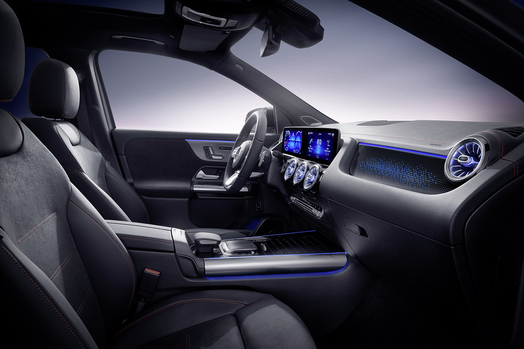 MBUX steht für Mercedes-Benz User Experience und bedeutet einfach: Ihr EQA ist intelligent und intuitiv über die grossen, hochauflösenden Bildschirme bedienbar, deren Inhalte Sie selbst festlegen. Die Bedienung erfolgt per Handbewegung, Berührung oder per Sprache. Mit den Worten «Hey Mercedes» aktivieren Sie MBUX und äussern Ihre Wünsche. Schnittstellen für das Smartphone und digitale Medien sorgen zudem für einzigartiges Infotainment.