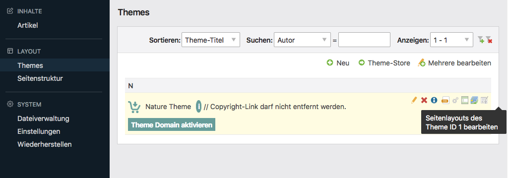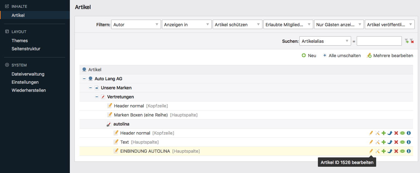 Das Javascript wird via das Layout (Themes/Layout) integriert. Das Layout heisst "Zweispaltiges Layout mit linker Spalte AUTOLINA"