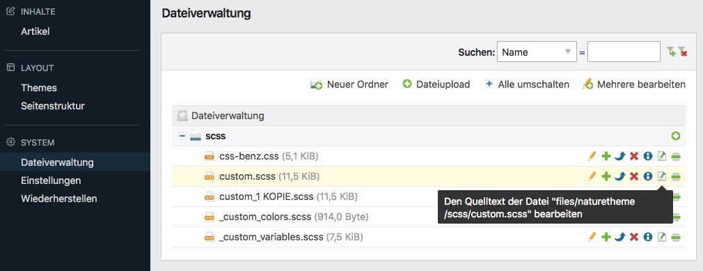 Unter "Dateiverwaltung" finden Sie das CSS ! Es heisst custom.scss